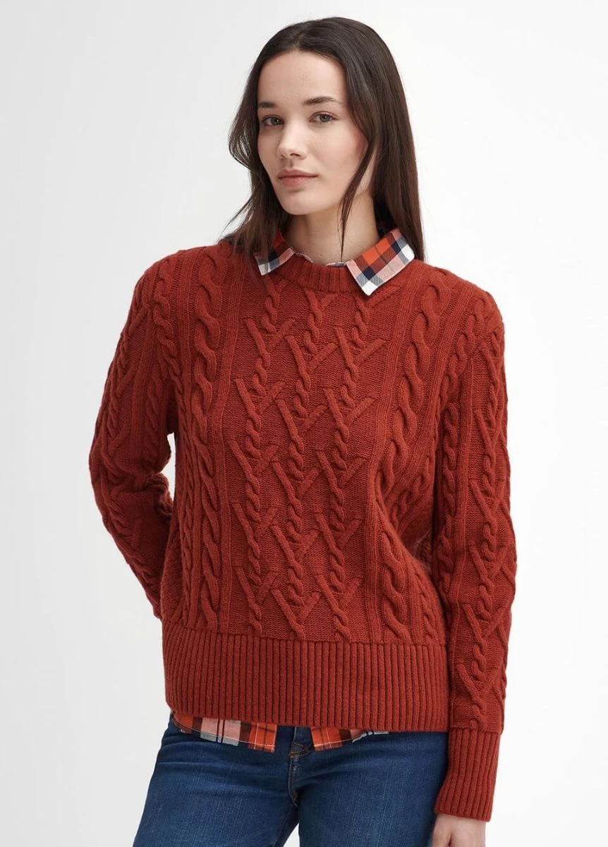 Barbour Solway Cable-Knit Jumper – Spiced Pumpkin