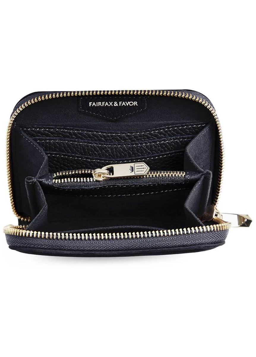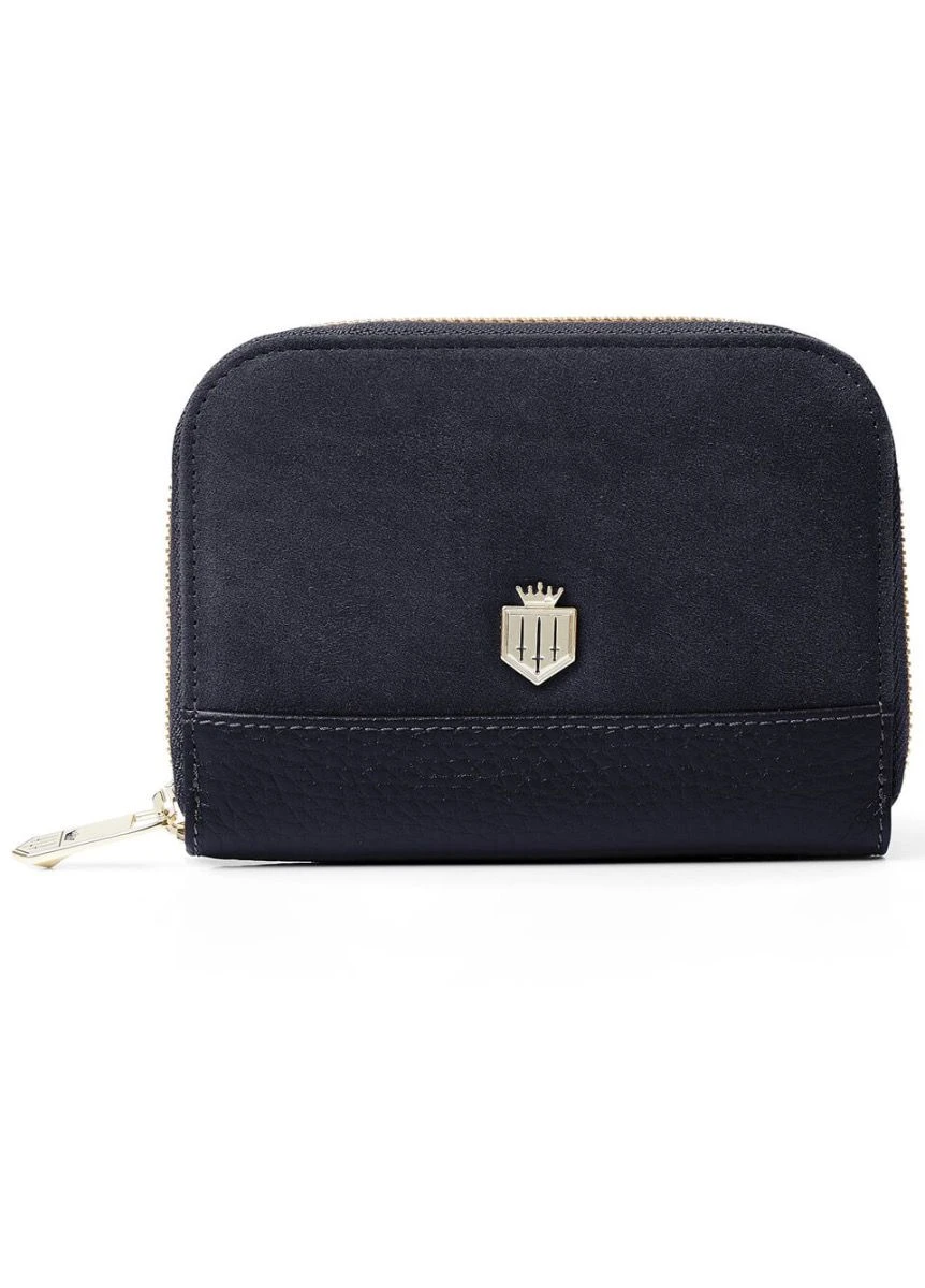 The Mini Salisbury is a compact purse that encapsulates everything we love about the Salisbury purse. Perfect for a smaller bag like the Mini Windsor, whilst still having practical space for your essentials. Hand crafted in suede and leather, with a full zip closure, an internal zipped compartment for coins, finished with three card slots. The purse is finished with the signature Fairfax & Favor gold shield with navy enamel.