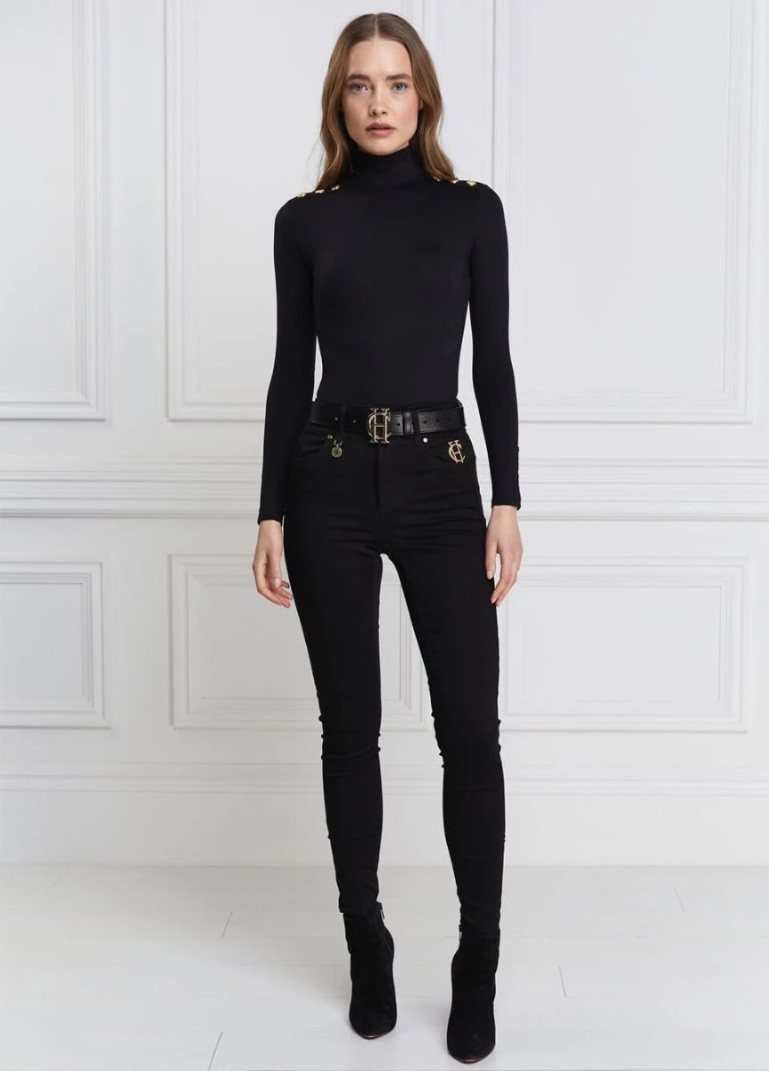 Our signature Jodhpur Jeans are woven with an ample amount of stretch to sculpt and flatter your silhouette to the max. Designed to sit high on the waist while ensuring they do not cut in. Tuck your sweater or blouse into the sculpting high-rise waist for an extra stylish look and feel. Designed to fit multiple leg lengths.