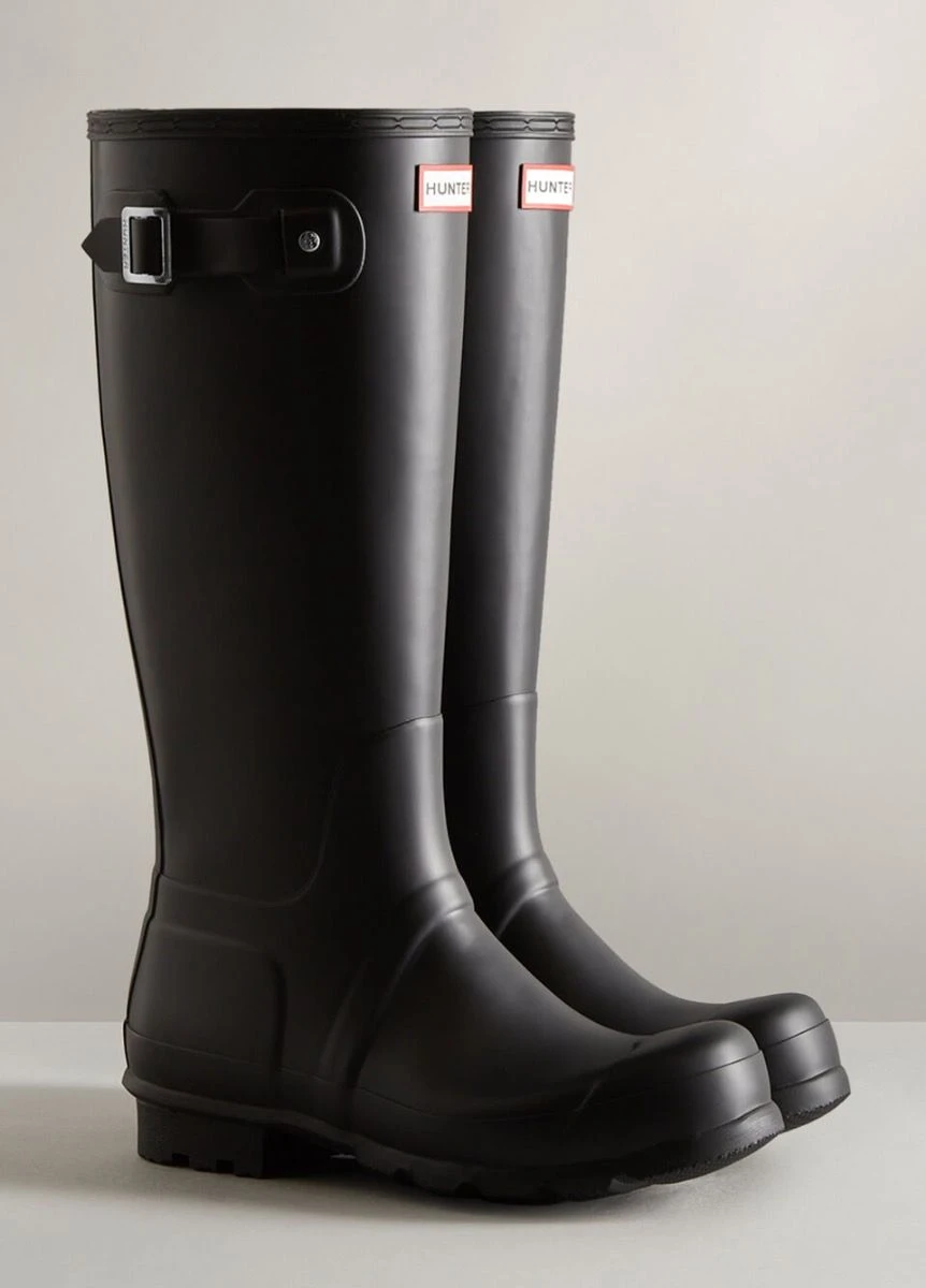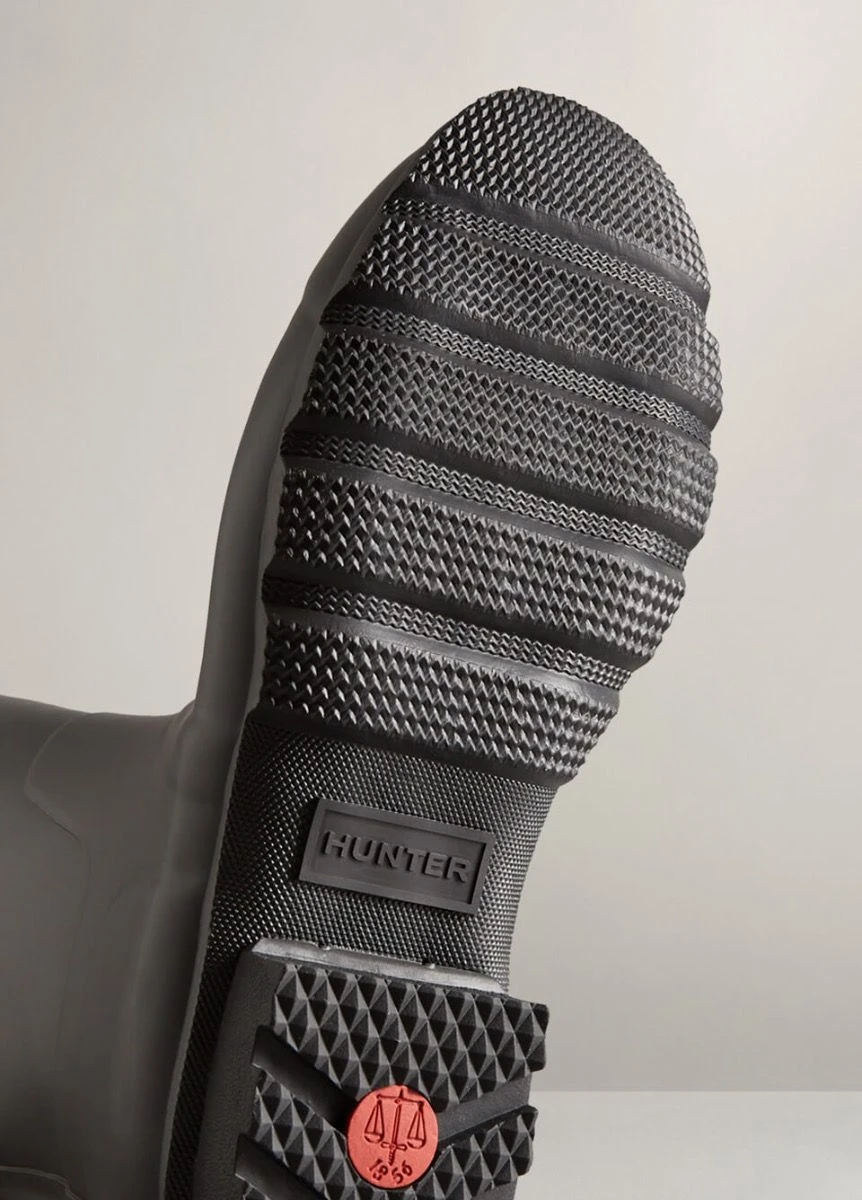 Designed to shield and protect from the elements, the Original Tall Wellington Boot has been at the heart of the Hunter Original brand since its introduction in 1956. Formed of natural rubber, each pair is made from 28 hand-cut parts and assembled over three days on an aluminium last bespoke to Hunter, before being vulcanised for superior protection. Featuring the Hunter Original tread pattern, and a comfortable polyester lining, this men’s waterproof boot with a classic black matte finish is a wet weather necessity.