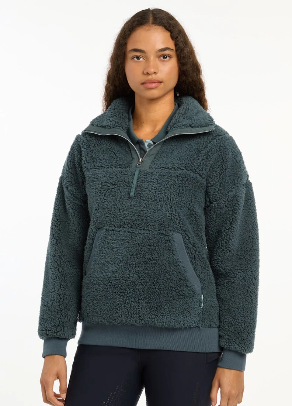 The Ladies Tara Teddy Fleece is a super soft, incredibly cosy layer of warmth. Thanks to the brushed interior, this relaxed-fitting fleece is just as soft on the inside as it is on the outside. The cuffed waist and cuffs create a flattering shape while trapping heat to keep you feeling toasty warm. The quarter zip detail with a large oversized collar and side pockets make this both a stylish and practical pullover for riding, around the yard, or wearing as loungewear around the house. But once it’s on, you won’t want to take it off.