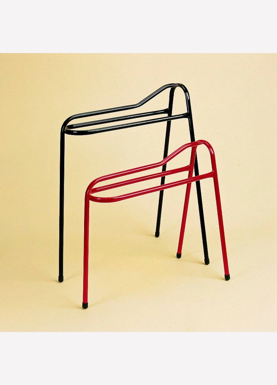 This saddle display stand is ideal for anyone who doesn’t have room on their walls for a rack, and is a must have for anyones tack room! Keeping your saddle off the floor and supported helps not only to maintain it’s shape, but to keep it in good condition. Lightweight and plastic coated, this standard size is suitable for all types of saddle.